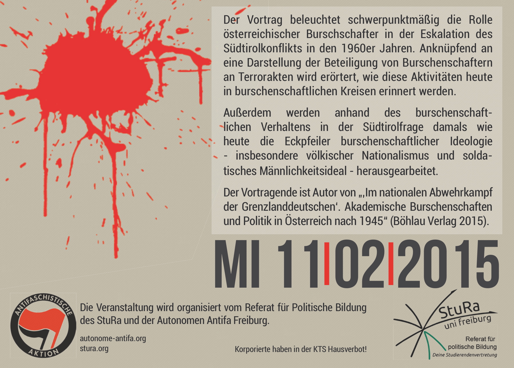 Der Vortrag wird organisiert vom Referat für Politische Bildung und der Autonomen Antifa Freiburg.